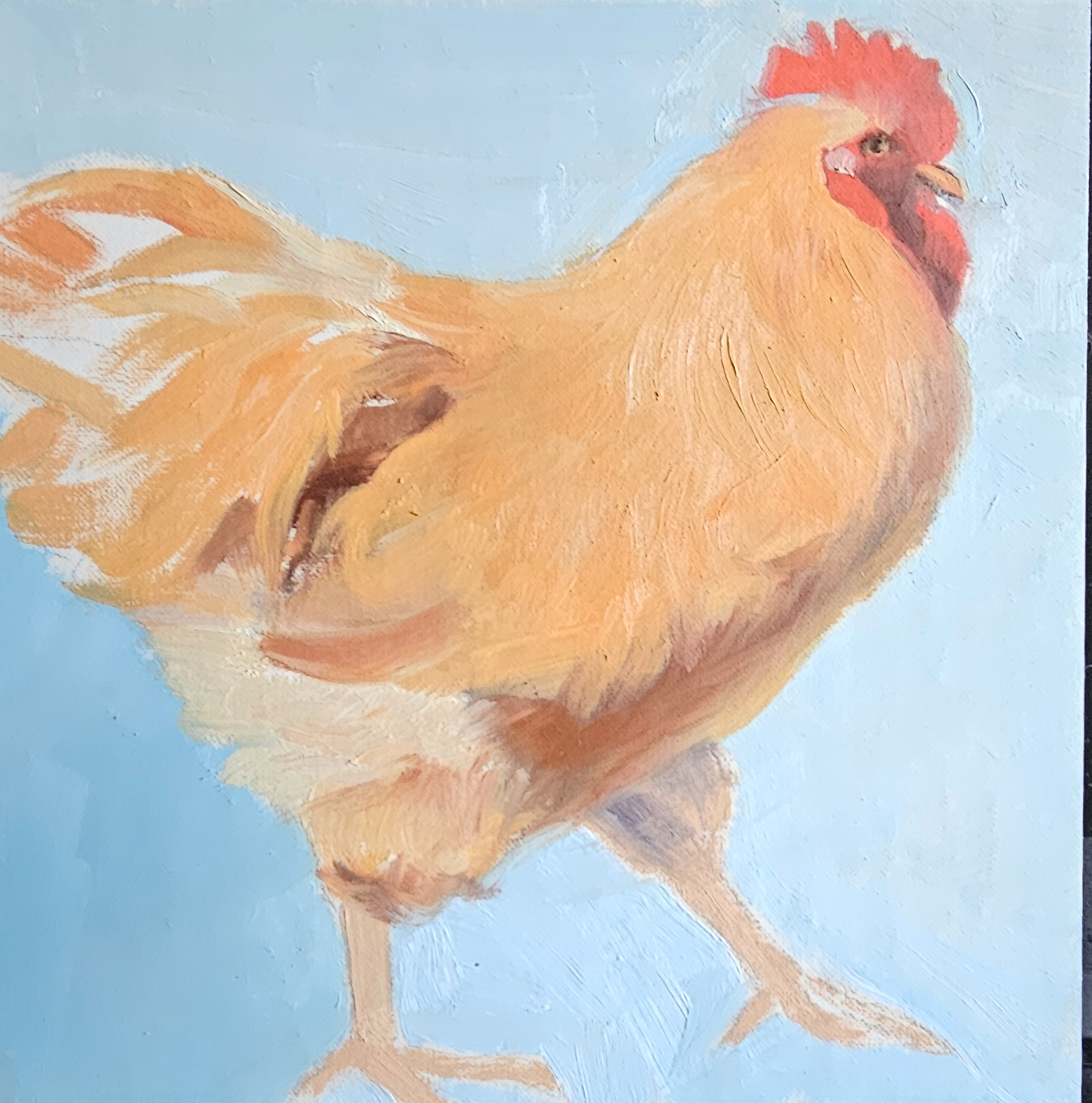 I love chickens! I had them for a while, but they are a lot of work and I don’t live on acerage anymore, so whenever I see some, out pops the phone to get photos. I rarely draw them though,….not sure why that is. This is a work in progress, but one I’ll definitely finish.