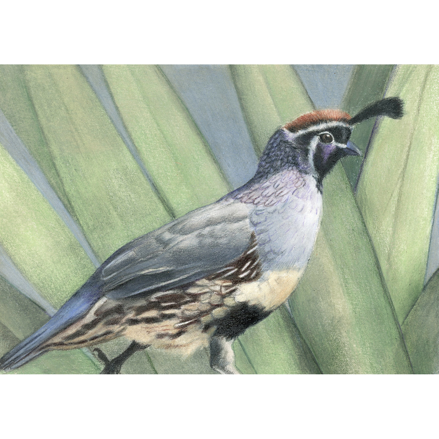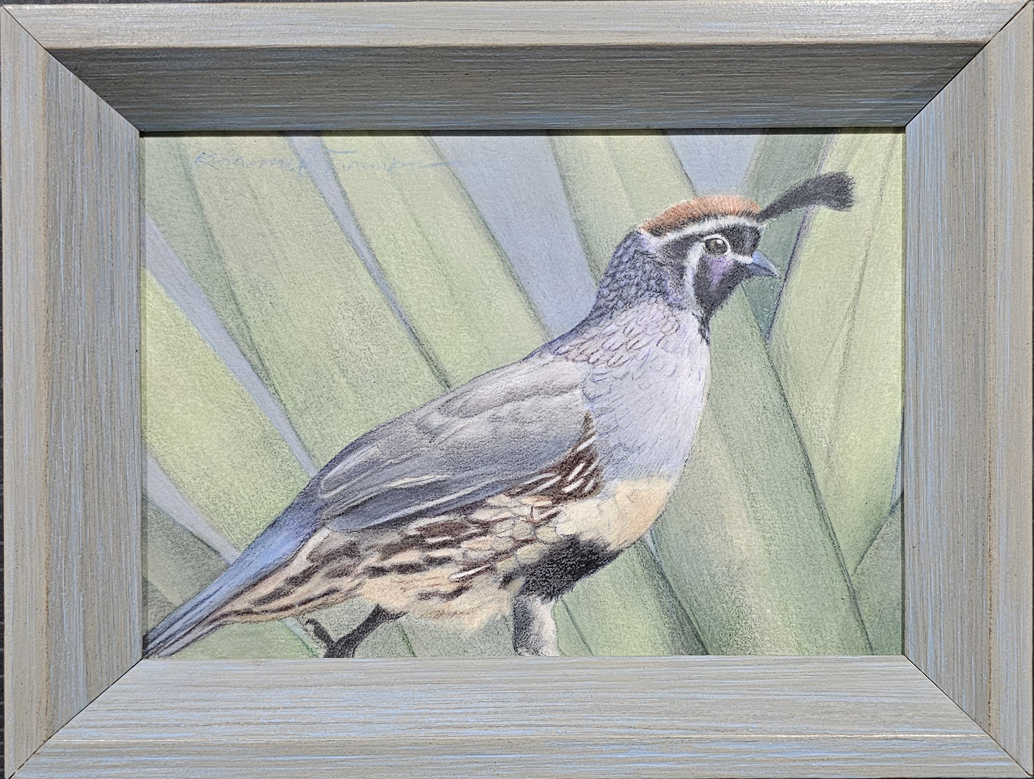 Home / Shop / Original Drawings / Colored Pencil / 36 – Arizona Quail 36 – Arizona Quail$325.00 Week 36 Colored Pencil on Panel 5″ x 7″ Conservation Varnished (which allows for framing without glass) Frame is included In stock 36 - Arizona Quail quantity Add to cart Buy with Categories: 52 Weeks, Colored Pencil, Original Drawings Related products 12 – Barn Time $750.00 Add to cart 16 – Little Foal $425.00 SOLD 17 – Sleeping Bison Work In Progress 23 – Cow Work In Progress